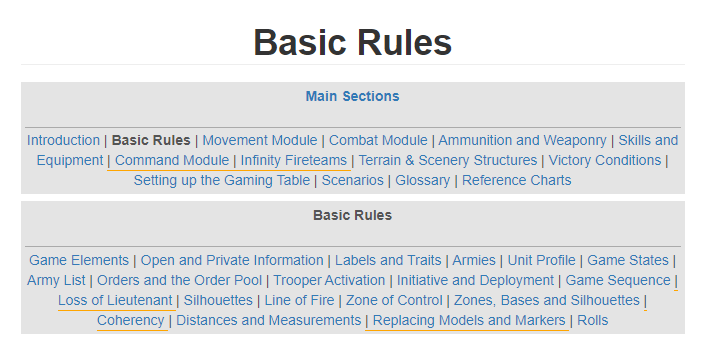 This is one I hear a lot and it perplexes me. Infinity is actually has very few rules comparatively. The basic rules section and other modules are relatively small and is broken into pretty digestible sections.