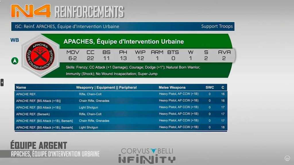 Merovingian fans will be somewhat disappointed to learn that only one new unit, the Apaches, join the ranks of Ariadna with this expansion. That said, the roster of units available for selection are compelling in their own ways that set them apart from any other faction. While it’s hard to tell exactly how Equipe Argent will flesh out since complete point values and profiles are still unknown for most of the force, I believe certain patterns and details are already making themselves apparent. Let’s start by looking at the roster: