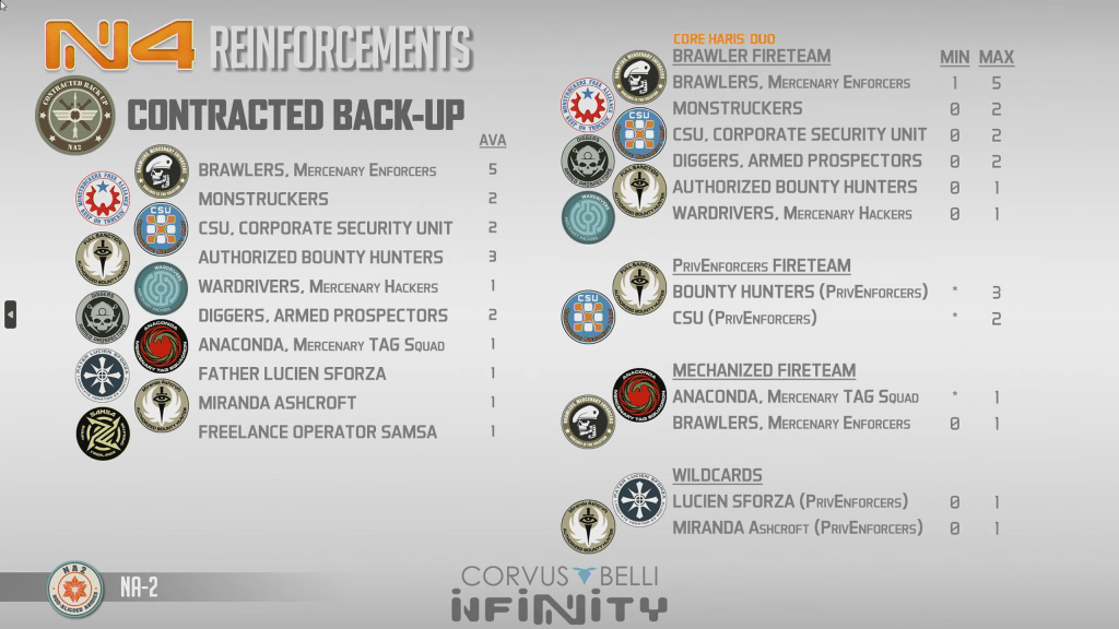 Some of the other options here are really important to mention. Umbra appearing in the midfield might make them a compelling choice where they previously weren’t really seen much. Nexus operatives joining both the haris mostly exists to bring their costs down but they also don’t mind being in the midfield. Ko Dali is a very dangerous midfield piece. Combined army also gets the exclusive rights to getting their TR bot as reinforcements which is a huge deal. The plasma gun TR bot appearing at its happy range bands is amazing and something that may drive your enemy crazy trying to deal with it. The FO bot is common to lost of armies reinforcements but is still a good addition. Time will tell if they keep marksmanship (they really shouldn’t) But a tacaware sensor repeater appearing in the midfield is great, and always something to consider.