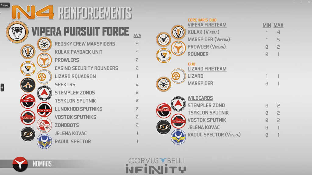 Lunokhod Appearing in the midfield should terrify anybody and in general I really like the remotes in Vipera Pursuit force. The infantry options here are okay, but I am not sure if they synergize well with nomads existing game plan. I am not sure how well you will be able to afford a Lizard if it doesn’t change significantly from its previous form but time will tell there.