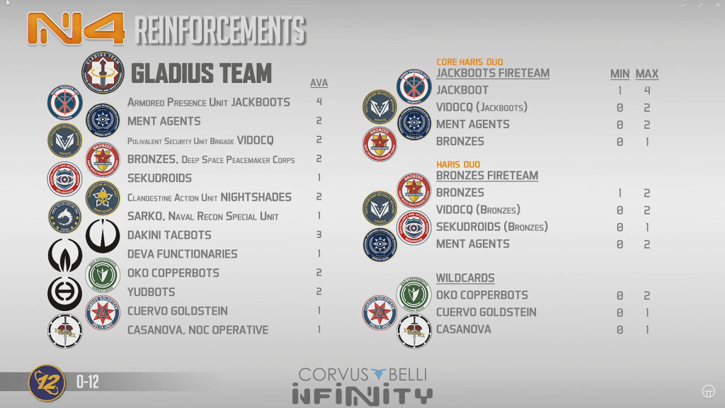 Looking at O12 as a whole there’s some cool stuff here. Bronzes in the midfield are sweet, and Oko copperbots as ava 2 wildcards is sweet. Cassanova and Cuervo are nasty close range pieces. Bronze fireteams seem really fun to play around with, as their durability and new found deployment mobility may allow them to finally function as intended. Sarko is a weird but welcome addition here too. Don’t overlook the power of a dakini paramedic to fill things out here. its a fast specialist that gunfights well within 16. Overall the new pieces are good, and they synergize well with the old pieces.