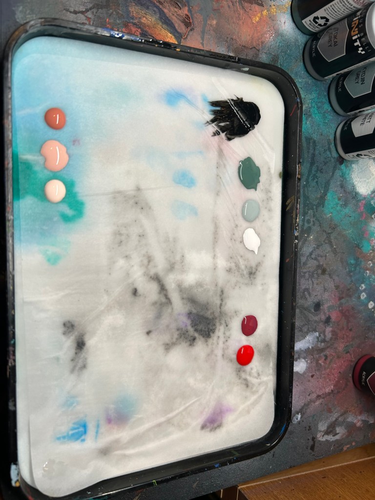 To start I put matte black on my wet palette and proceeded to apply the black all over the model.