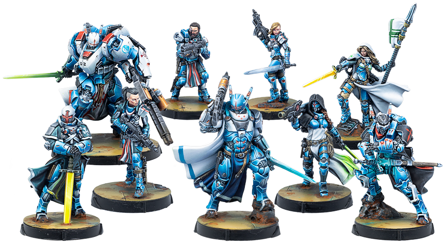 Direct Templates are particularly valuable as an active turn player because the mere threat of them can force your opponent not to take an offensive action back but Dodge instead. A Boarding shotgun Hospitaller can waltz up an opponent and ask them confidently what their ARO is. If the opponent chooses to dodge the potential burst 2 direct template, the Hospitaller can use hit mode to oppose the dodge while not being in any physical danger themselves. If the Opponent chooses to shoot back, the Hospitaller can just lay down the templates confident their armor and extra wound will keep them functional.